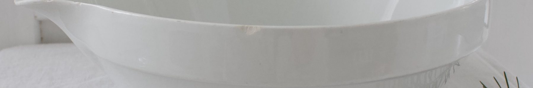 Kaunis nokallinen pikku vikainen valkoinen vatkauskulho, Arabia.