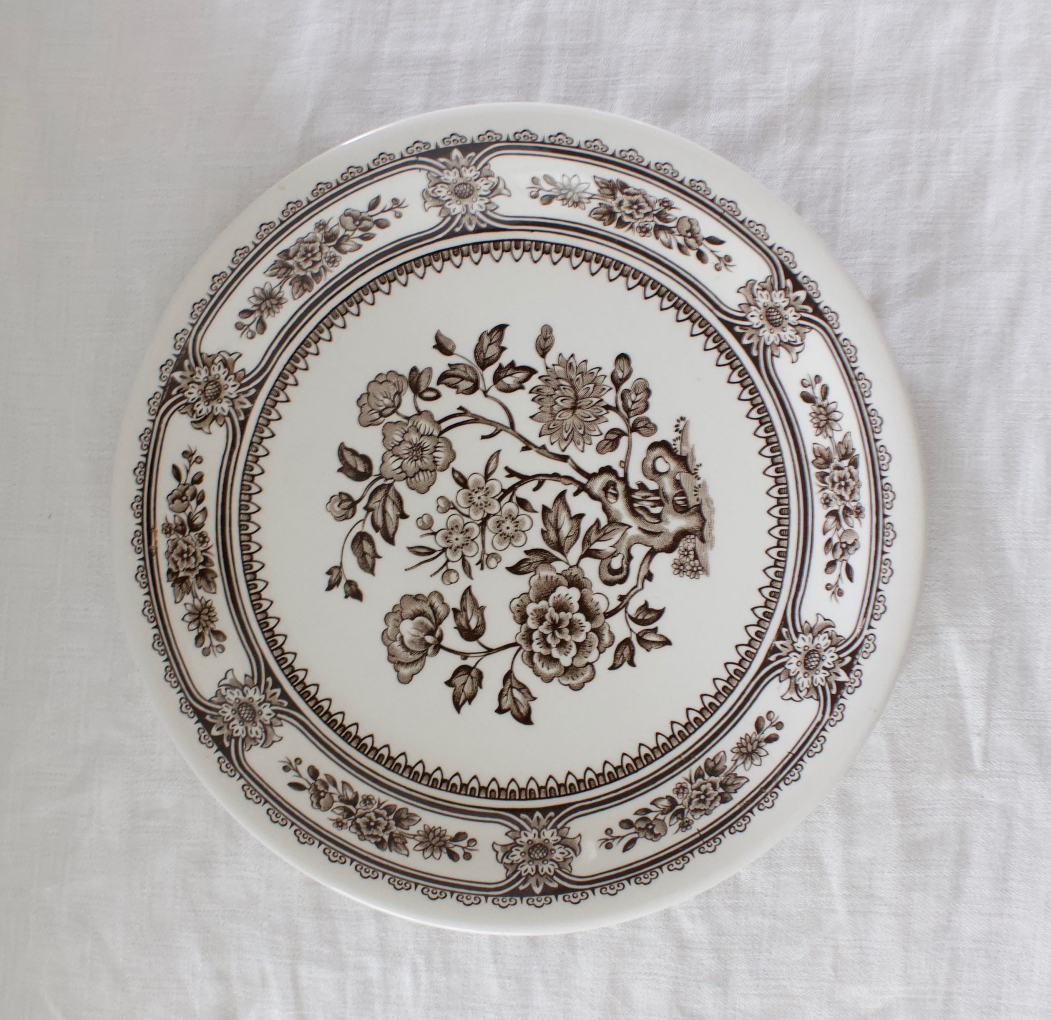 Vanha englantilainen ruskea kuviollinen lautanen.