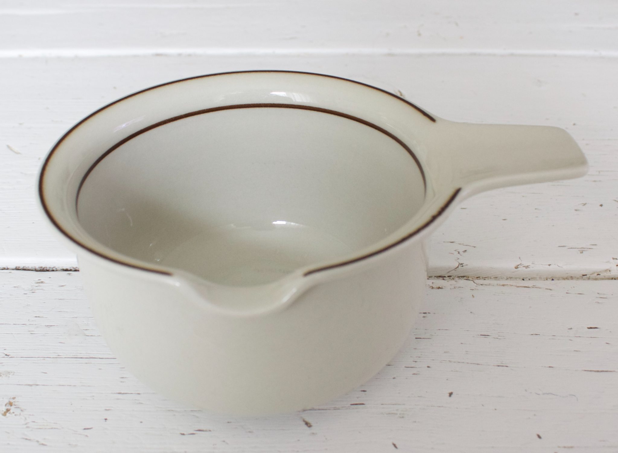 Arabian vanha Fennica sarjan kastikekaadin harmaa/beige, jota kiertää ohut ruskea reuna. Hyvä kuntoinen.
