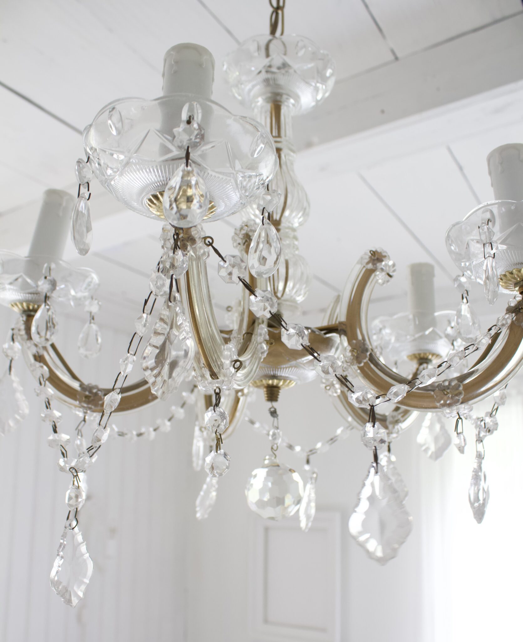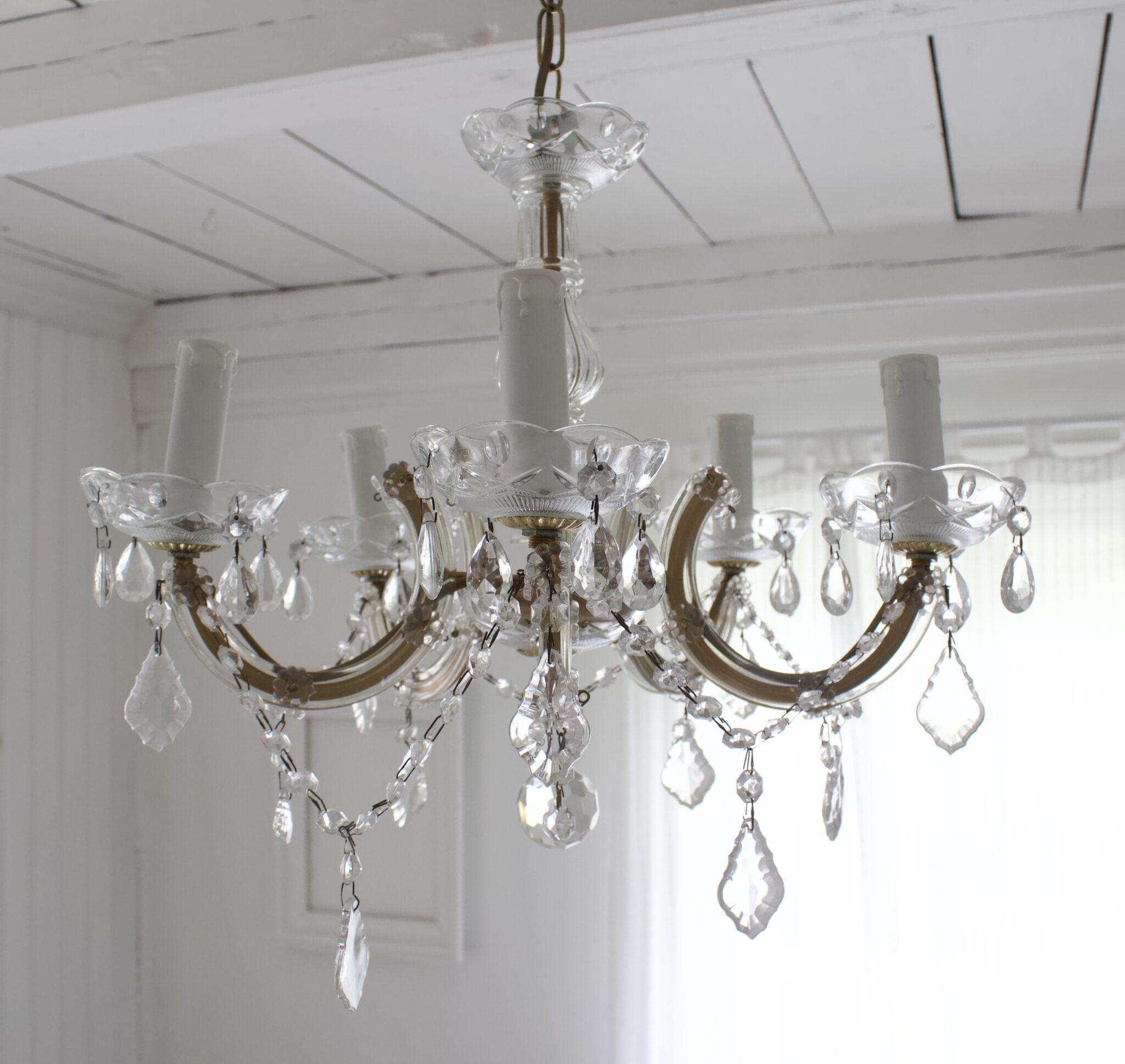 Kaunis vanha Maria Theresia kristallikruunu viidellä sakaralla.