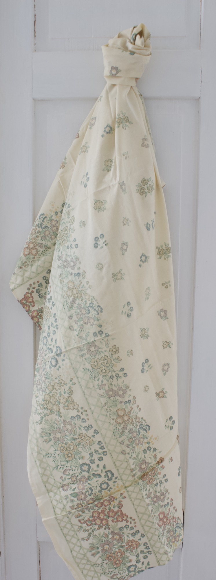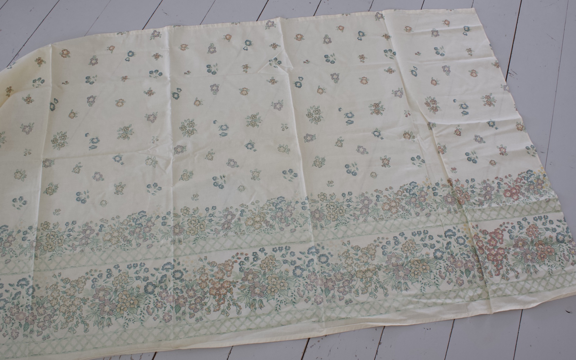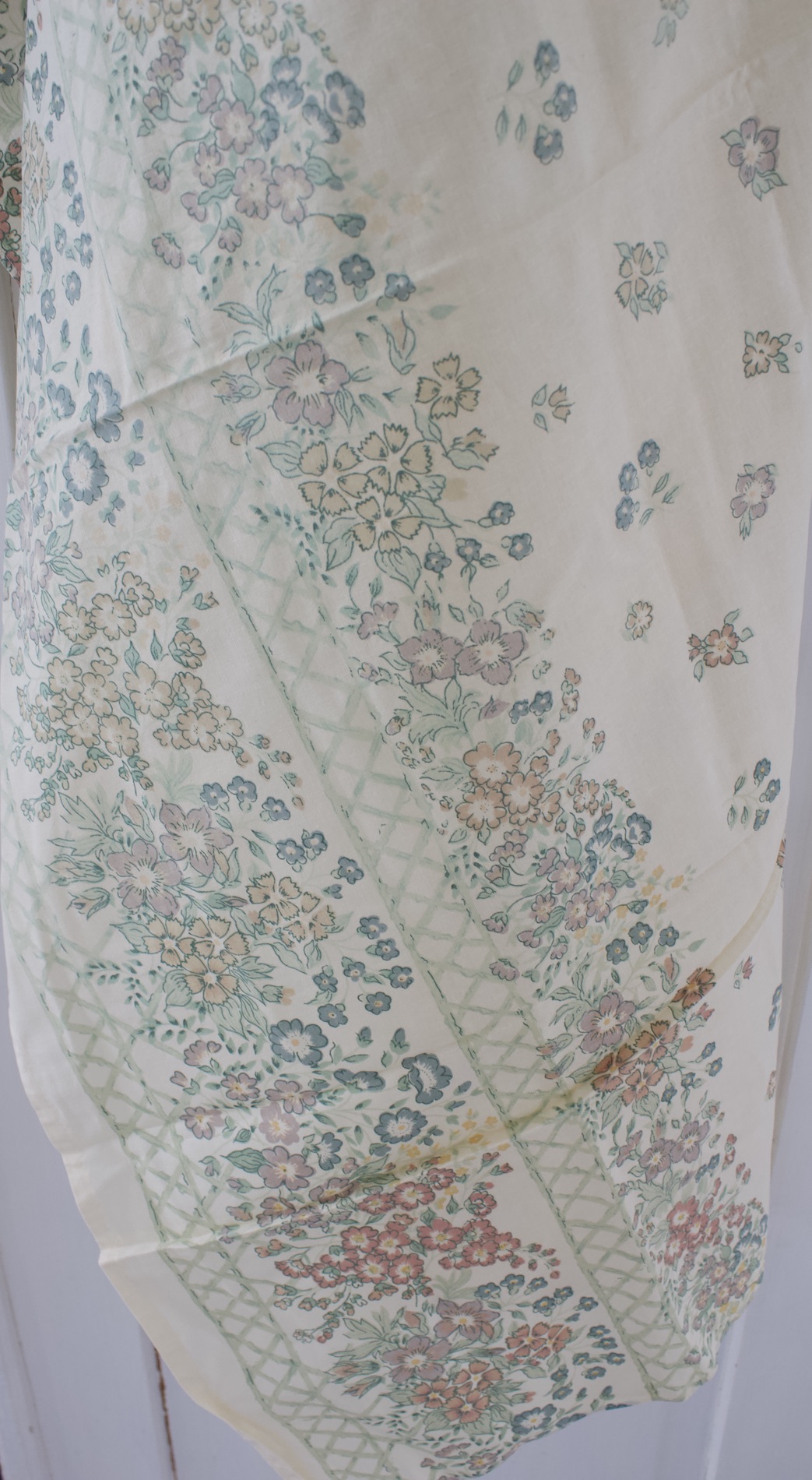 Kauniit hempeän kukalliset vanhat puuvillaiset salusiinit sekä yksi pitkä verho/ kangas.