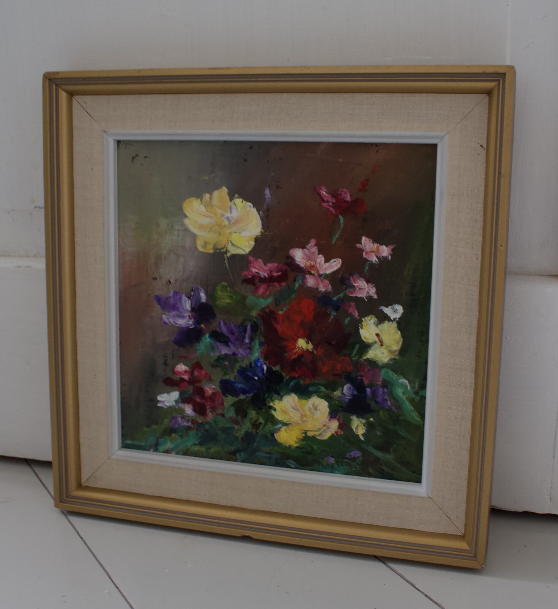 Kukallinen vintage taulu, jossa puiset kehykset.