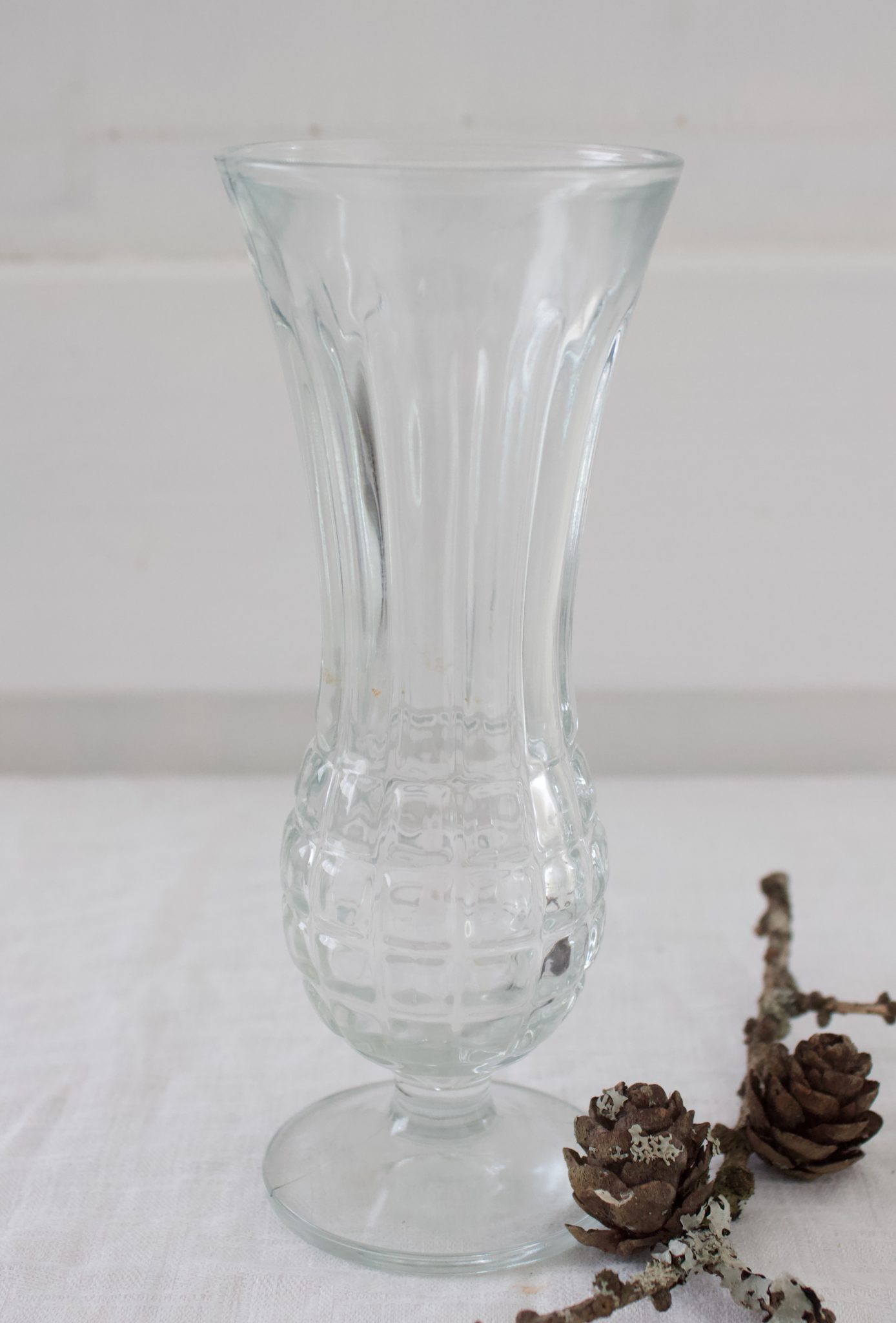 Vanha jalallinen lasinen kukkamaljakko.