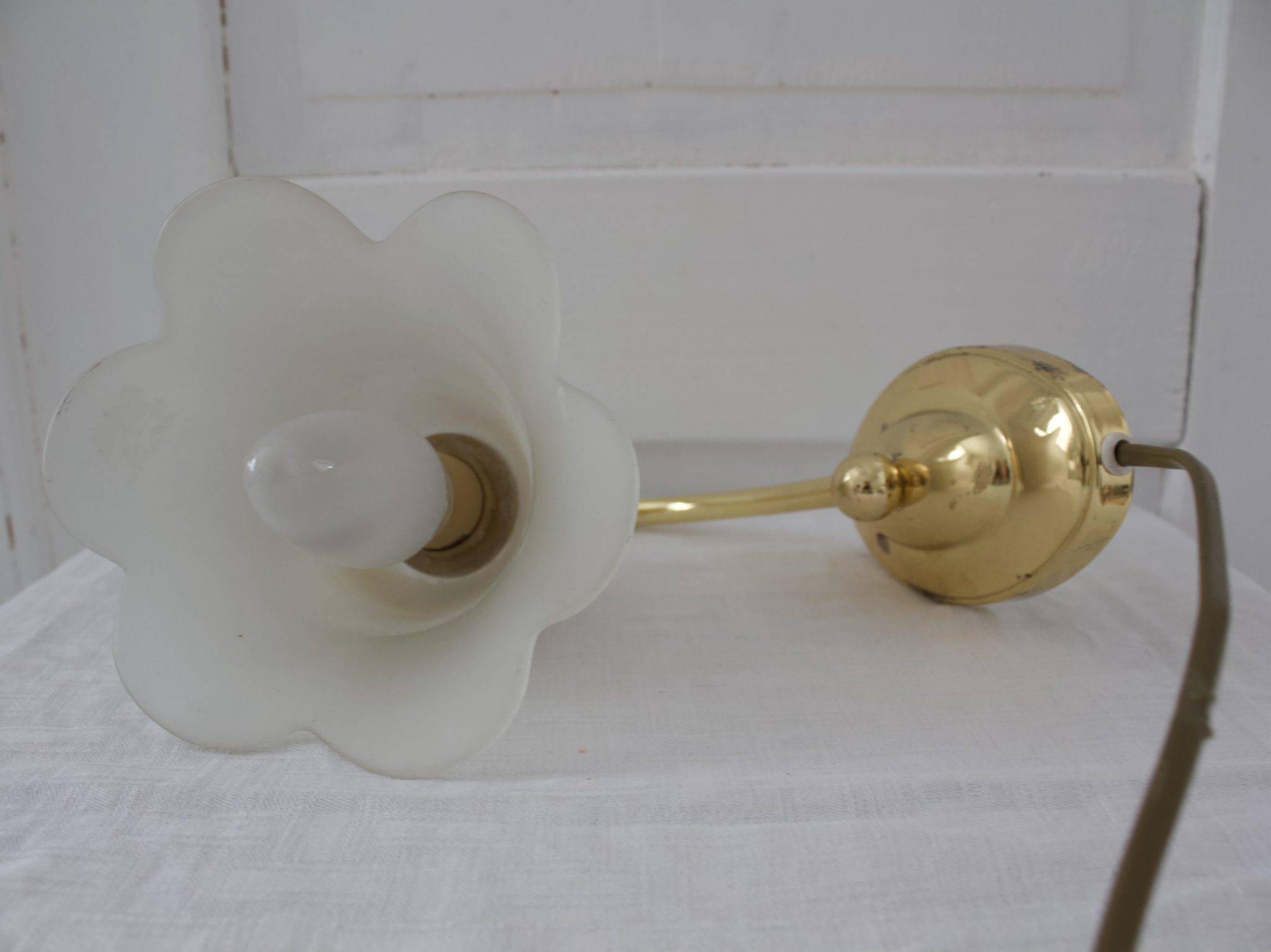 Kaunis kissankellomainen lasinen seinävalaisin kullanvärisellä metalli rungolla.