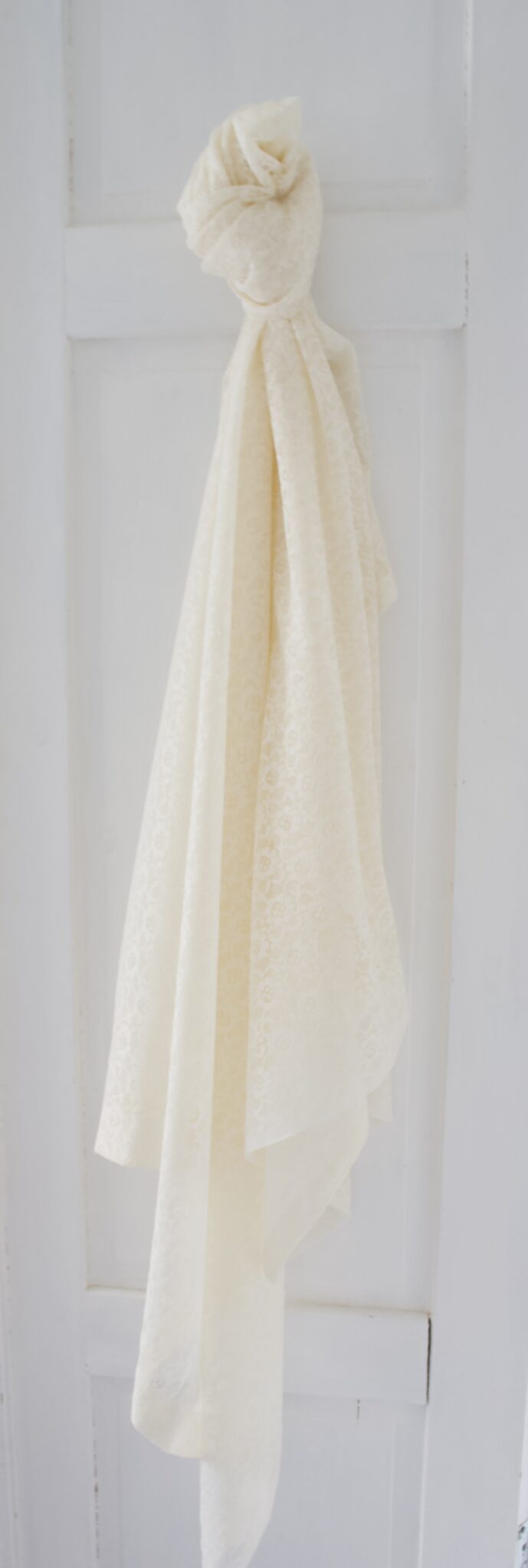 Kaunis luunvalkoinen vanha pitsiverho.