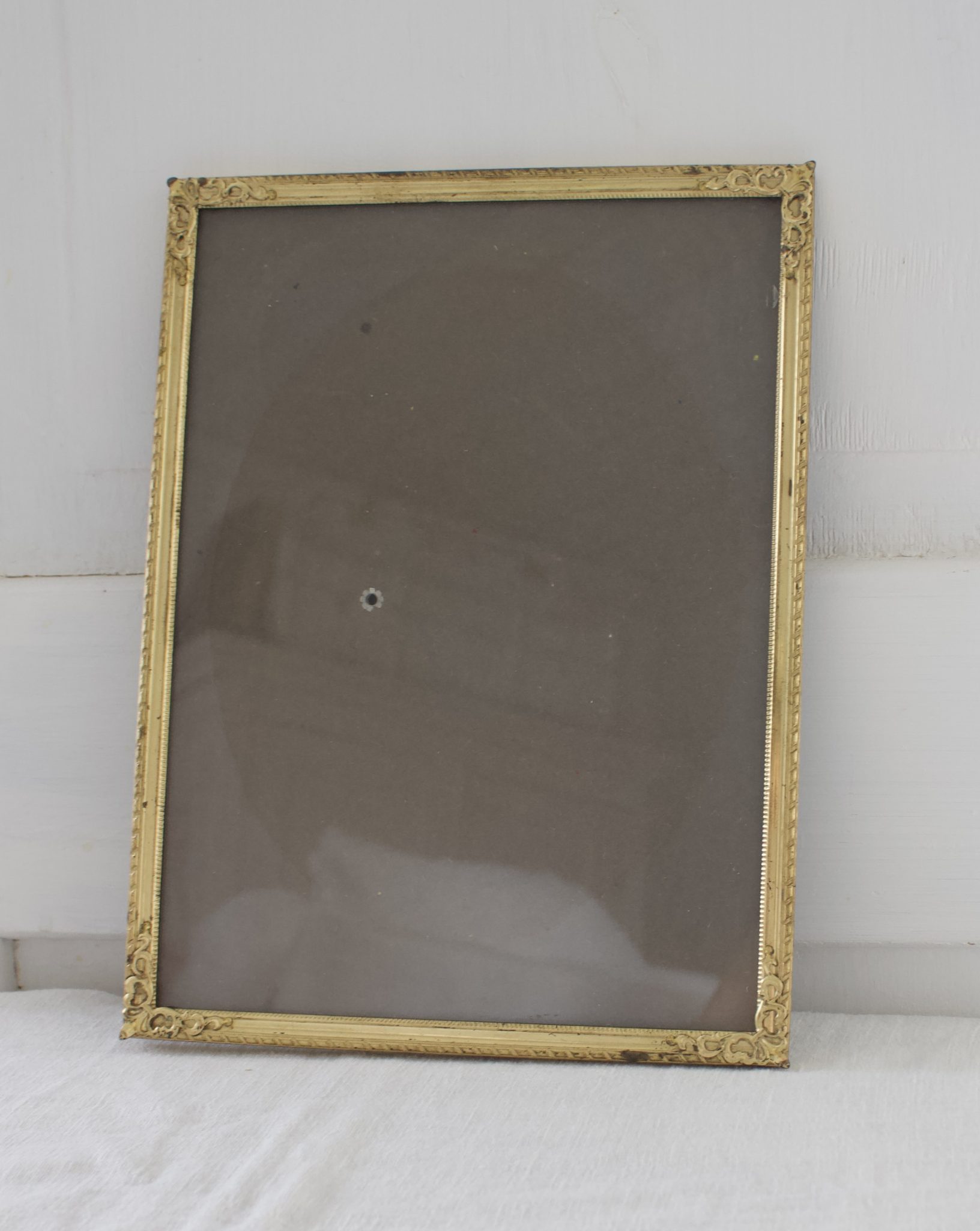 Messinkinen valokuvakehys, jossa koristeelliset reunat.