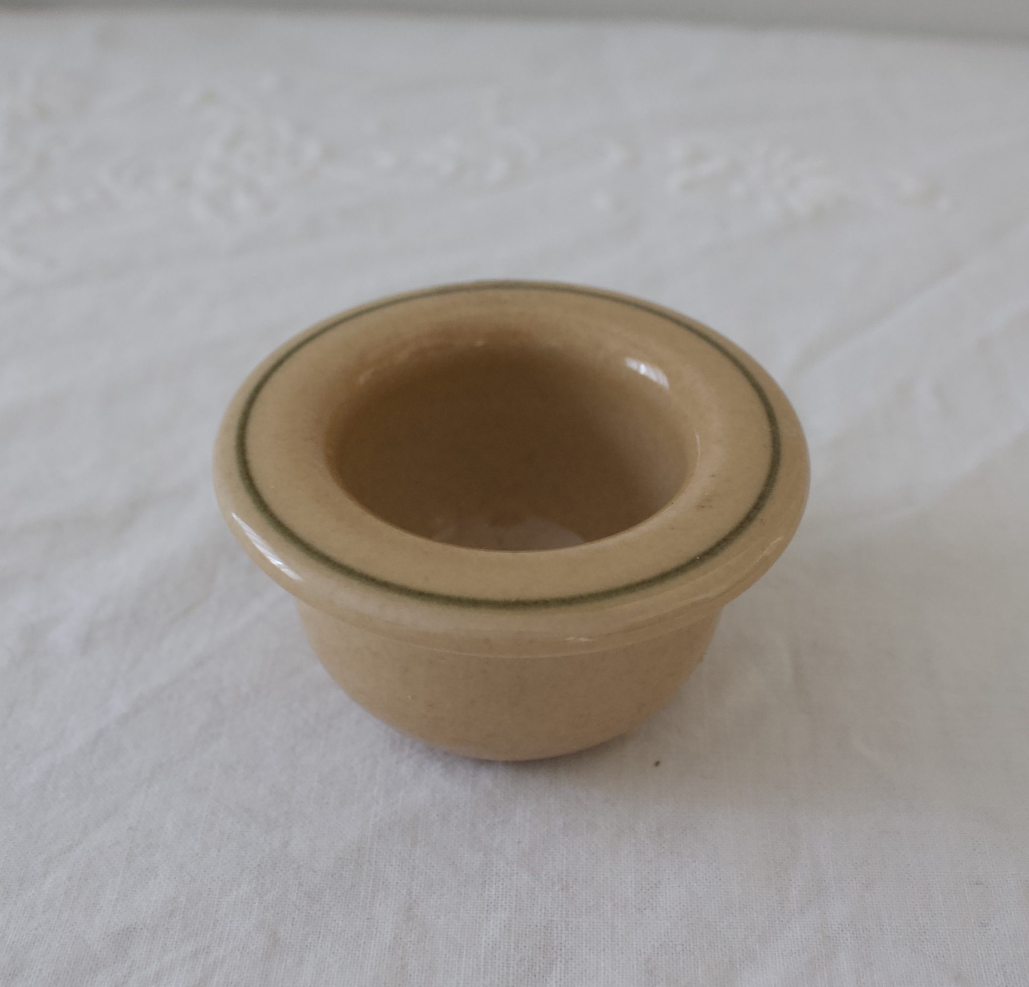 Vaalea beigen sävyinen ulkolainen vanha munakuppi.