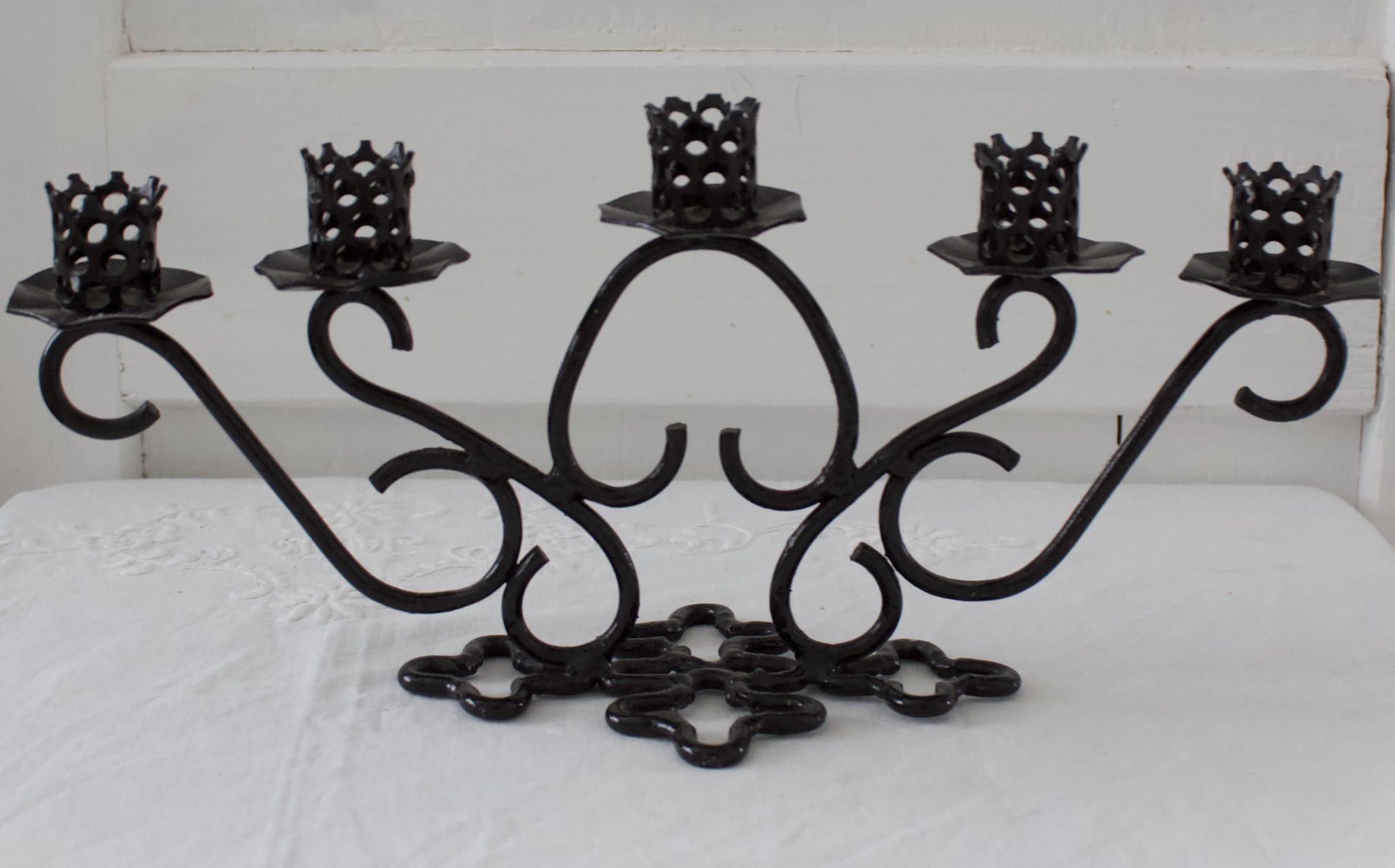 Musta metallinen kynttelikkö.