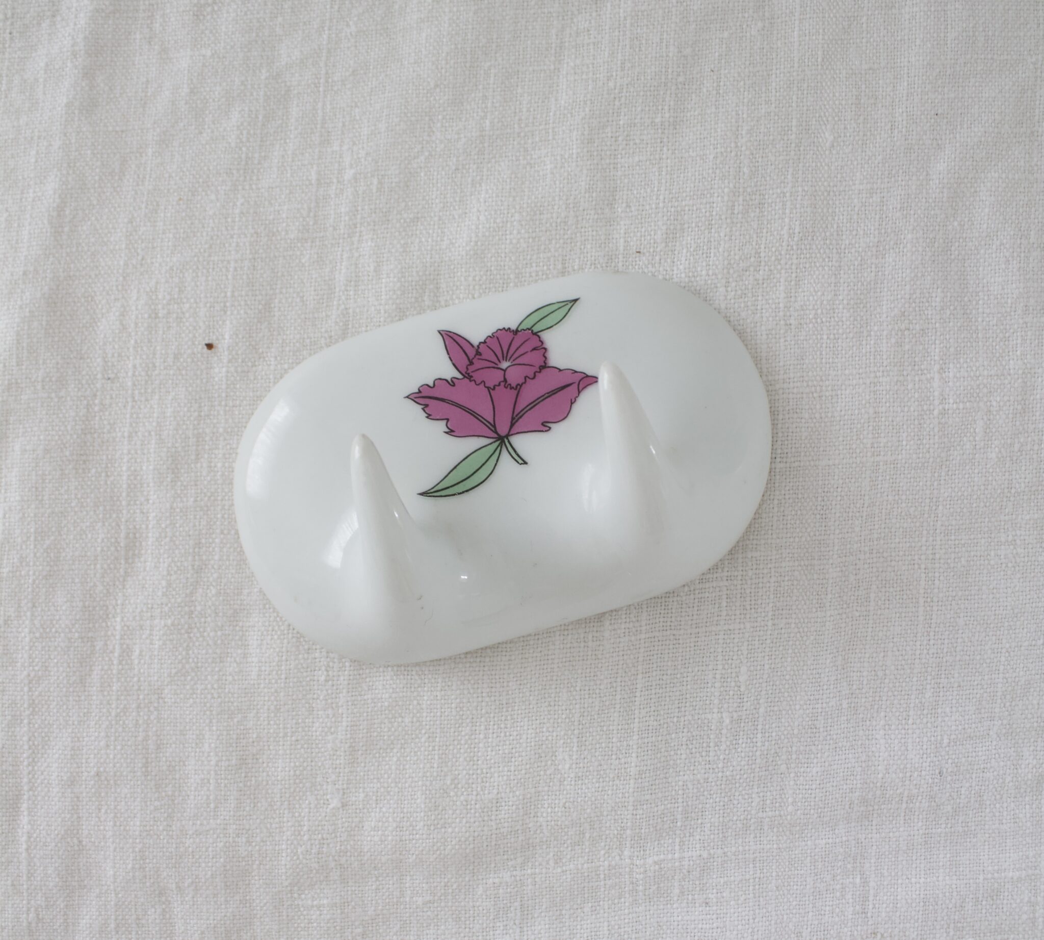 Vanha valkoinen pieni kahden koukun posliininaulakko. Takana aukko naulalle yms.