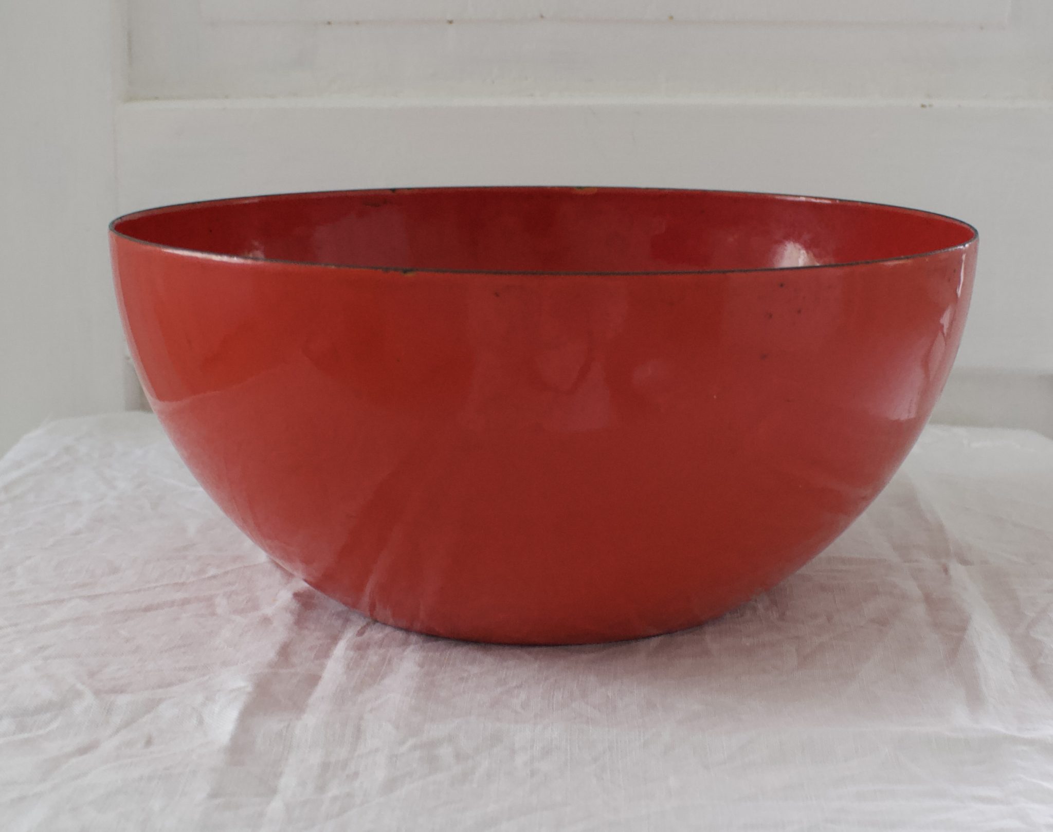 Punainen Finel kulho. Sisäpuolella jälkiä.