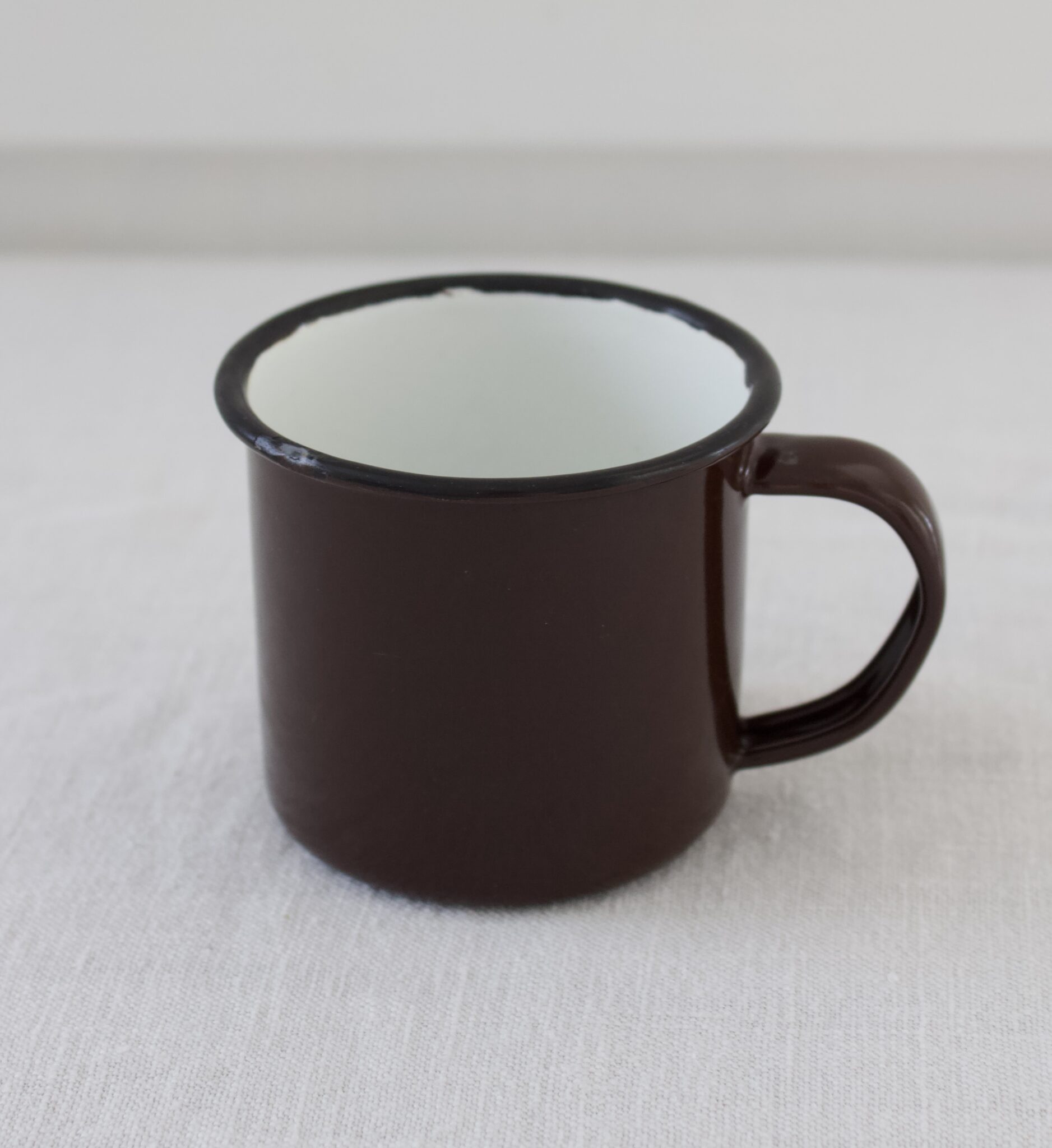 Ruskea emali muki.