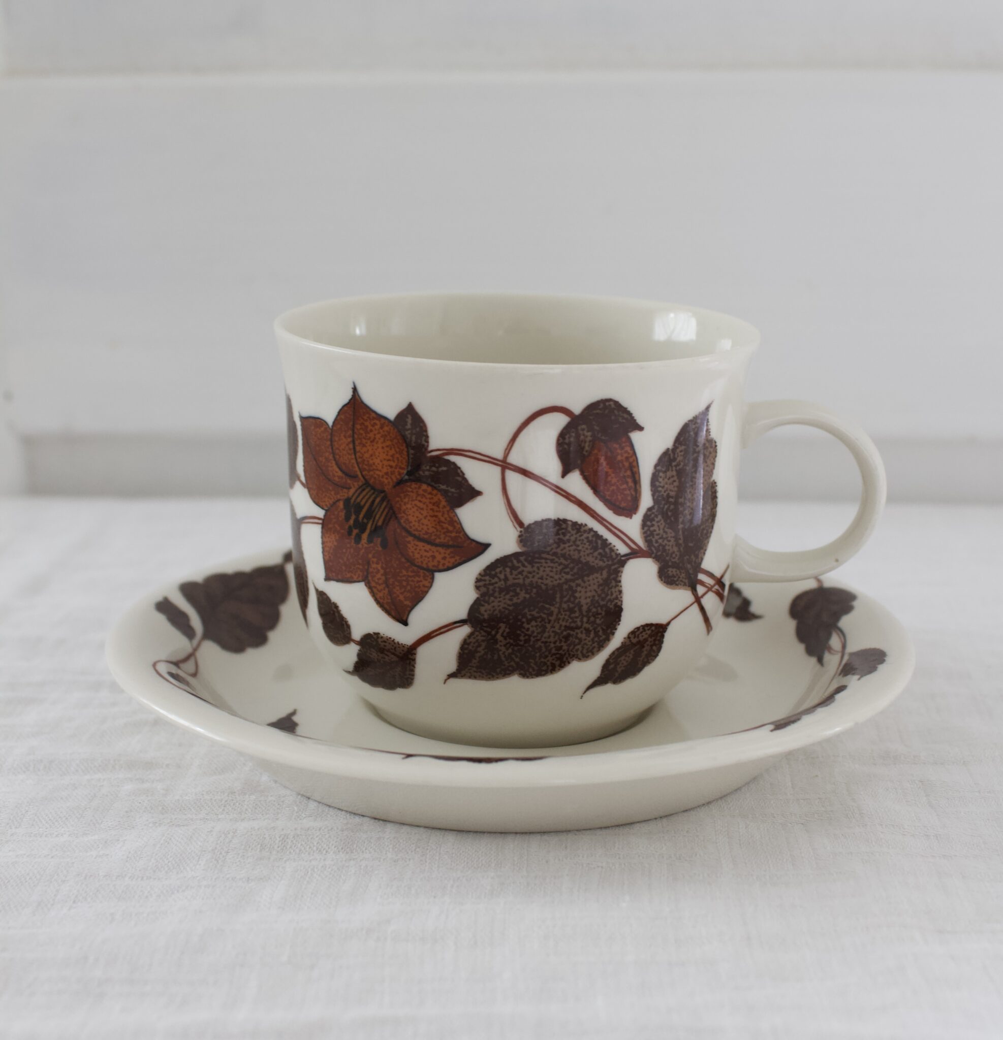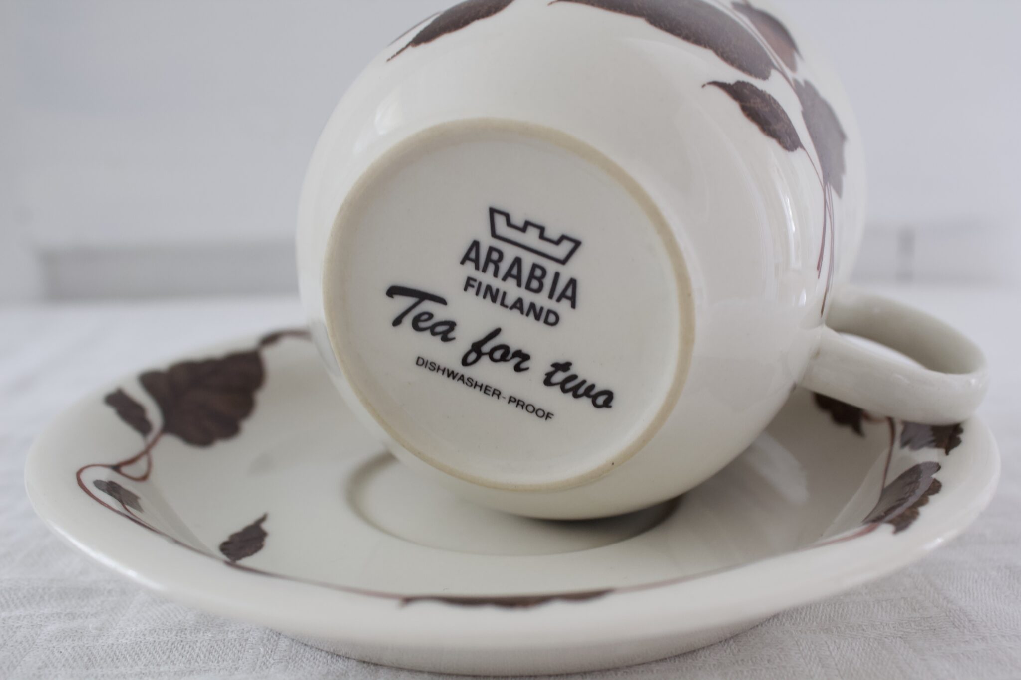 Kaunis ruskeasävyinen teekuppi, Tea for two teekuppi, Arabia.