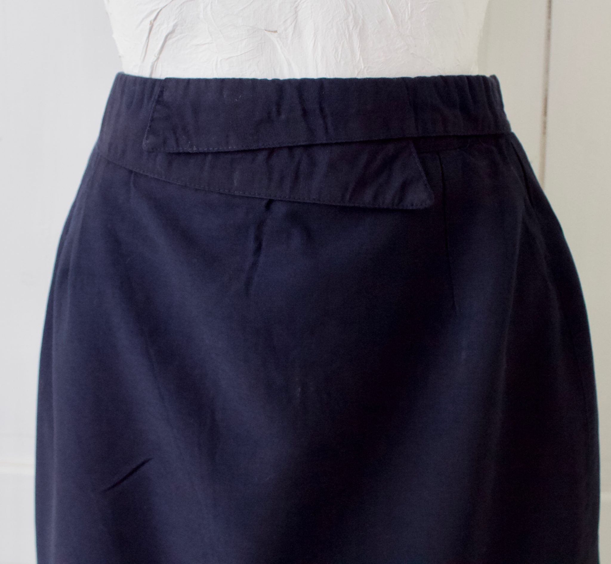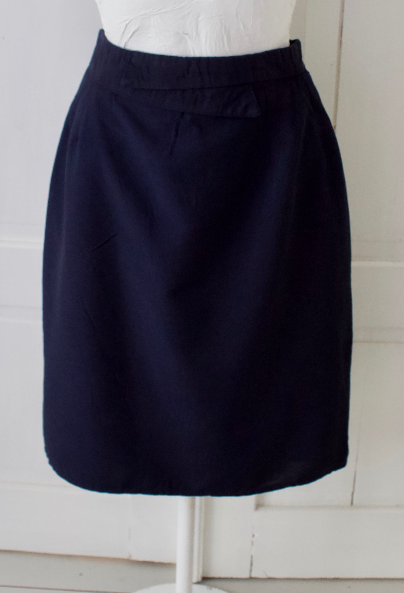 Laivastosininen kapea puolihame.Takana vetoketju ja nappi.