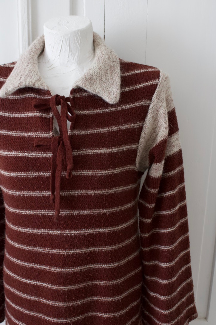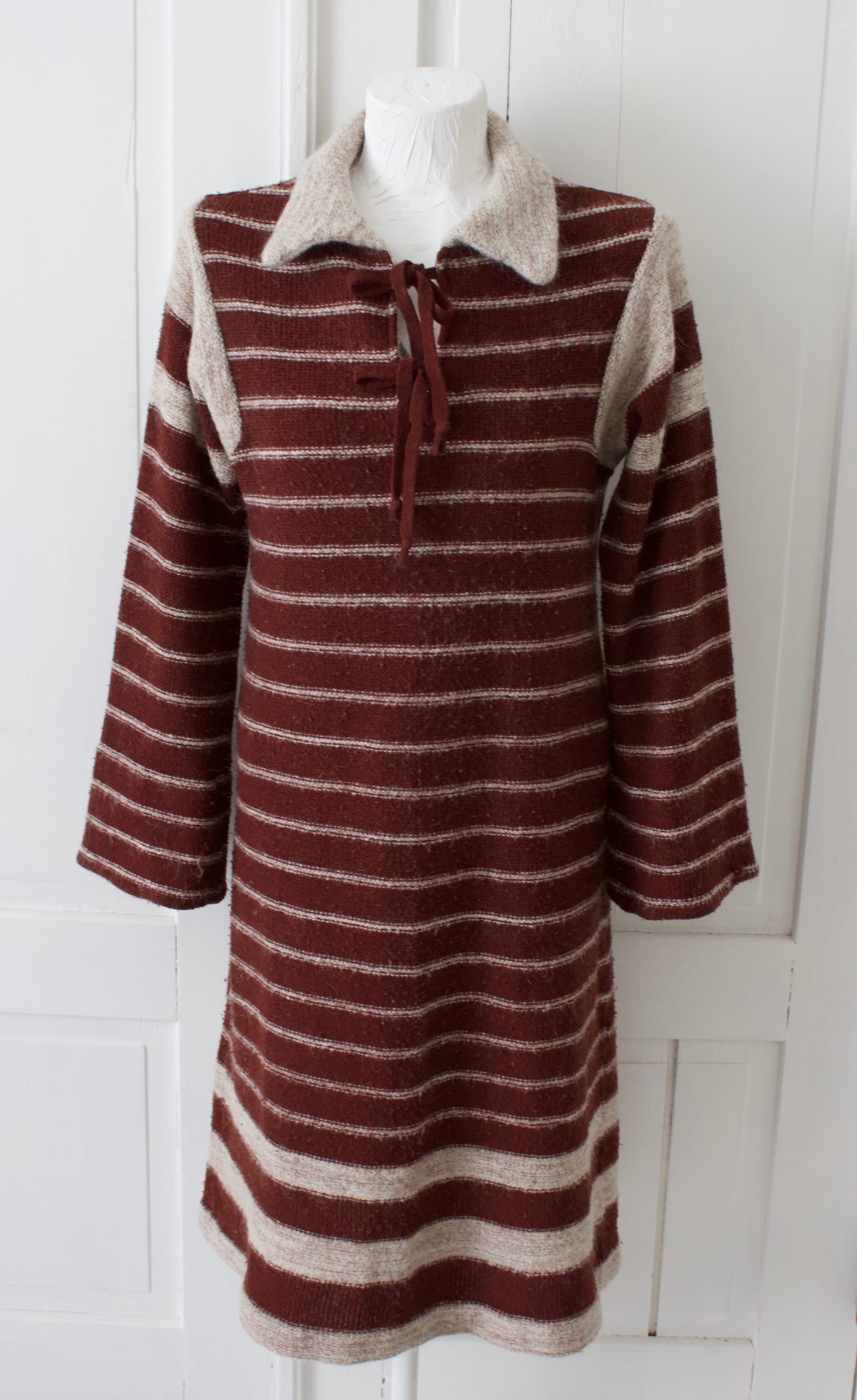 Vintage raidallinen neulemekko. Hieman levenevät hihat ja helma.