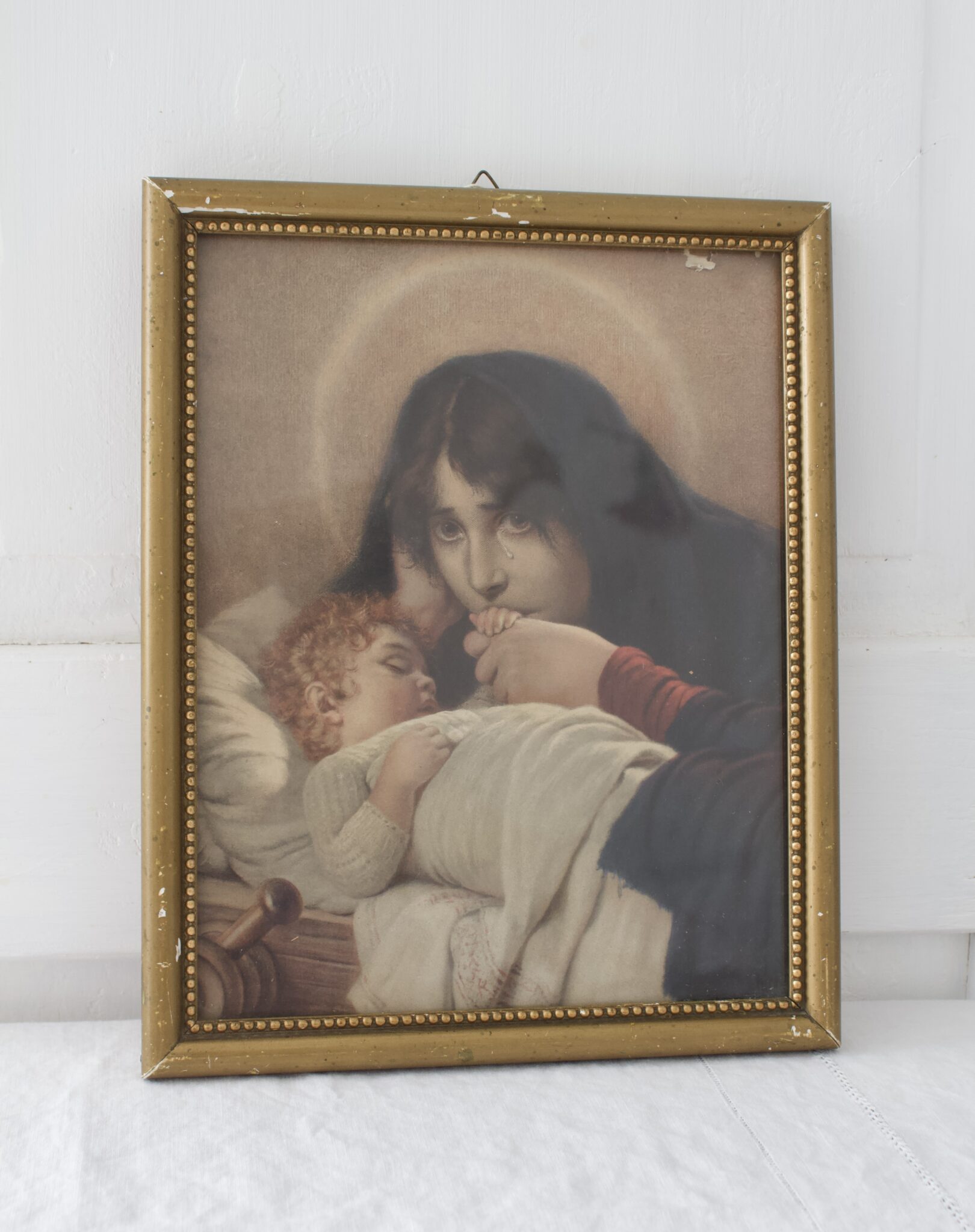 Ihana vanha taulu, jossa puiset koristeelliset kehykset.